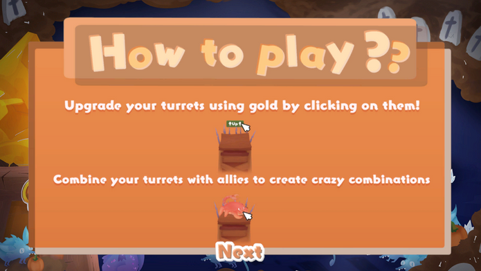 Puts turrets and creatures to fight the waves. You can also mix and match all the turrets with a creature to make more damage and upgrade them!